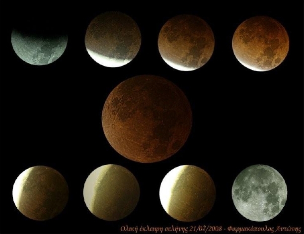 Για να συμβεί έκλειψη Σελήνης, θα πρέπει αυτή να βρεθεί στη σκιά της Γης. στην ίδια ή σχεδόν ίδια ευθεία. Μια σεληνιακή έκλειψη μπορεί να συμβεί μόνο κατά την πανσέληνο. Όταν η Σελήνη βρεθεί ολόκληρη στη σκιά τότε μιλάμε για Ολική έκλειψη, ενώ όταν ένα μέρος της μόνο βρεθεί στη σκιά, τότε έχουμε Μερική έκλειψη. Εκλείψεις Σελήνης συμβαίνουν κάθε χρόνο αλλά δεν είναι ορατές από όλα τα μέρη. Οι παρακάτω φωτογραφίες είναι από μία ολική και μία μερική έκλειψη Σελήνης των ετών 2008-2009. Η επόμενη ολική έκλειψη που θα είναι ορατή από την Ελλάδα θα γίνει στις 15 Ιουνίου 2011. Περισσότερα :
