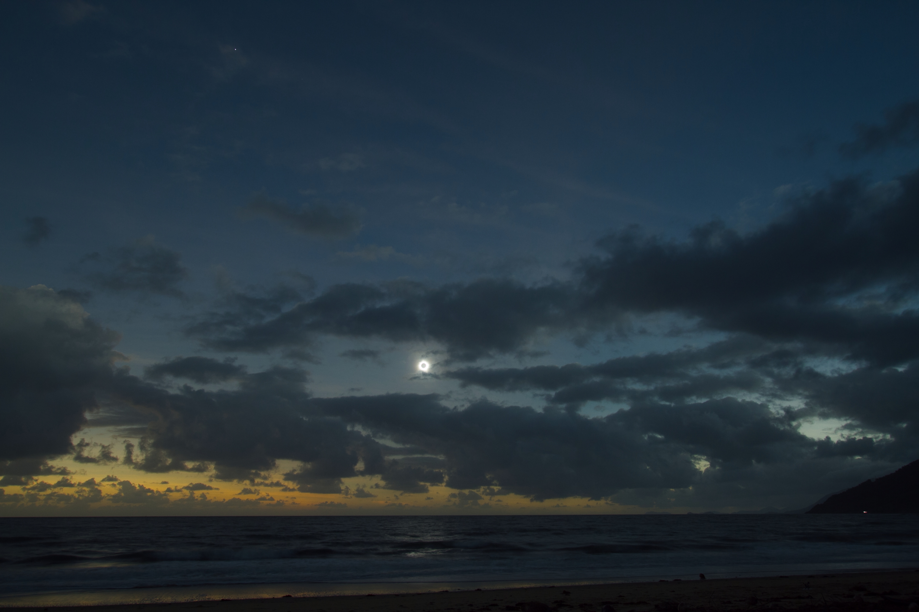 Ξεκινήσαμε γύρω στις 12:30πμ, ο δρόμος ήταν άδειος και όσο πλησιάζαμε στο σημείο παρατήρησης όλο και βλέπαμε ανοιχτά τμήματα ουρανού στα ανατολικά. Οι ελπίδες μας αναπτερώθηκαν. Όταν φτάσαμε στην παραλία ήταν ήδη γεμάτη από εκλειπτικούς φίλους από όλο τον κόσμο. Αφού κάναμε μια αναγνωριστική βόλτα στήσαμε και εμείς τα τρίποδα και τις φωτογραφικές μας. Μέσα σε όλα δεν έχασα την ευκαιρία να αποθανατίσω μέσα από τα περιφερόμενα σύννεφα μερικούς νότιους αστερισμούς. Ουσιαστικά ήταν μόλις η 2η και τελευταία μας επαφή με τον Νότιο Ουρανό μιας και δεν μας έκανε καμιά καλή βραδιά σε όλη την διάρκεια του ταξιδιού. Καθώς ξημέρωνε τα σύννεφα αντί να αραιώνουν πύκνωναν. Την ώρα που ανέτειλε ο Ήλιος υπήρχε ένα άνοιγμα χαμηλά και τον είδαμε να ανεβαίνει ώσπου κρύφτηκε μέσα στα πυκνά νέφη, χάνοντας την 1η επαφή. Για λίγες στιγμές είδαμε την μερική φάση και όλοι παρακαλάγαμε για μια τρύπα την ώρα της ολικότητας. Η ώρα πέρασε χωρίς να το καταλάβουμε και λίγα δεύτερα πριν την 2η επαφή ο Ήλιος ξεπρόβαλε σε μια στενή ανέφελη λωρίδα. Θα την δούμε συλλογίστηκα και αμέσως μετά ένα λαμπερό διαμαντένιο δακτυλίδι εμφανίστηκε. Ζητωκραυγές ακούστηκαν μόλις έκανε την εμφάνιση του το μεγαλοπρεπές στέμμα. Το θέαμα ήταν απόκοσμο και δεν περιγράφεται με λέξεις. Η χαμηλή θέση του Ήλιου στις 15 μοίρες, ο ωκεανός η παραλία και ο κόσμος που είχε μαζευτεί για την παρατήρηση του φαινομένου έκαναν το θέαμα μοναδικό. Ευτυχώς ο Γιάννης και ο Δημήτρης αποθανάτισαν το τοπίο με τις εξαιρετικές τους λήψεις και ο Νίκος το κατέγραψε με βίντεο. Μετά από την τρίτη επιτυχή παρακολούθηση ολικής έκλειψης αυτό που έχω να πω σε αυτούς που με ρωτάνε, μα καλά αφού έχεις ήδη δύο τι διαφορετικό θα δεις πάλι, ένα έχω να πω. Κάθε έκλειψη ήταν μοναδική και εντελώς διαφορετική. Μια ολική έκλειψη Ηλίου δεν την βλέπεις απλώς, αλλά την ζεις την βιώνεις!