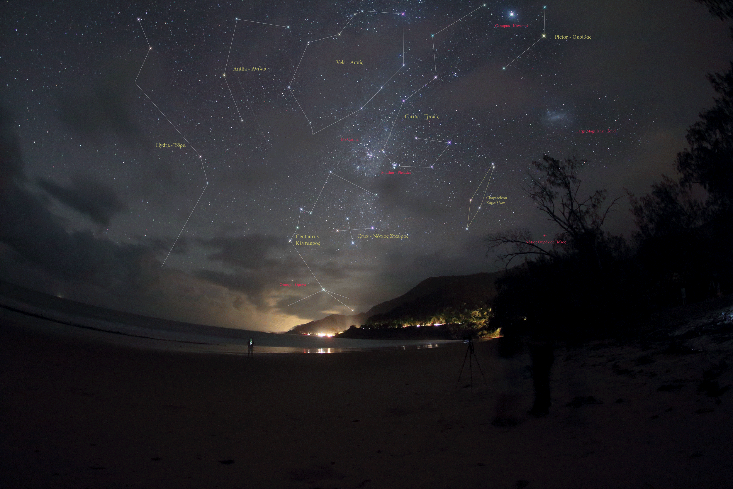 Ξεκινήσαμε γύρω στις 12:30πμ, ο δρόμος ήταν άδειος και όσο πλησιάζαμε στο σημείο παρατήρησης όλο και βλέπαμε ανοιχτά τμήματα ουρανού στα ανατολικά. Οι ελπίδες μας αναπτερώθηκαν. Όταν φτάσαμε στην παραλία ήταν ήδη γεμάτη από εκλειπτικούς φίλους από όλο τον κόσμο. Αφού κάναμε μια αναγνωριστική βόλτα στήσαμε και εμείς τα τρίποδα και τις φωτογραφικές μας. Μέσα σε όλα δεν έχασα την ευκαιρία να αποθανατίσω μέσα από τα περιφερόμενα σύννεφα μερικούς νότιους αστερισμούς. Ουσιαστικά ήταν μόλις η 2η και τελευταία μας επαφή με τον Νότιο Ουρανό μιας και δεν μας έκανε καμιά καλή βραδιά σε όλη την διάρκεια του ταξιδιού. Καθώς ξημέρωνε τα σύννεφα αντί να αραιώνουν πύκνωναν. Την ώρα που ανέτειλε ο Ήλιος υπήρχε ένα άνοιγμα χαμηλά και τον είδαμε να ανεβαίνει ώσπου κρύφτηκε μέσα στα πυκνά νέφη, χάνοντας την 1η επαφή. Για λίγες στιγμές είδαμε την μερική φάση και όλοι παρακαλάγαμε για μια τρύπα την ώρα της ολικότητας. Η ώρα πέρασε χωρίς να το καταλάβουμε και λίγα δεύτερα πριν την 2η επαφή ο Ήλιος ξεπρόβαλε σε μια στενή ανέφελη λωρίδα. Θα την δούμε συλλογίστηκα και αμέσως μετά ένα λαμπερό διαμαντένιο δακτυλίδι εμφανίστηκε. Ζητωκραυγές ακούστηκαν μόλις έκανε την εμφάνιση του το μεγαλοπρεπές στέμμα. Το θέαμα ήταν απόκοσμο και δεν περιγράφεται με λέξεις. Η χαμηλή θέση του Ήλιου στις 15 μοίρες, ο ωκεανός η παραλία και ο κόσμος που είχε μαζευτεί για την παρατήρηση του φαινομένου έκαναν το θέαμα μοναδικό. Ευτυχώς ο Γιάννης και ο Δημήτρης αποθανάτισαν το τοπίο με τις εξαιρετικές τους λήψεις και ο Νίκος το κατέγραψε με βίντεο. Μετά από την τρίτη επιτυχή παρακολούθηση ολικής έκλειψης αυτό που έχω να πω σε αυτούς που με ρωτάνε, μα καλά αφού έχεις ήδη δύο τι διαφορετικό θα δεις πάλι, ένα έχω να πω. Κάθε έκλειψη ήταν μοναδική και εντελώς διαφορετική. Μια ολική έκλειψη Ηλίου δεν την βλέπεις απλώς, αλλά την ζεις την βιώνεις!