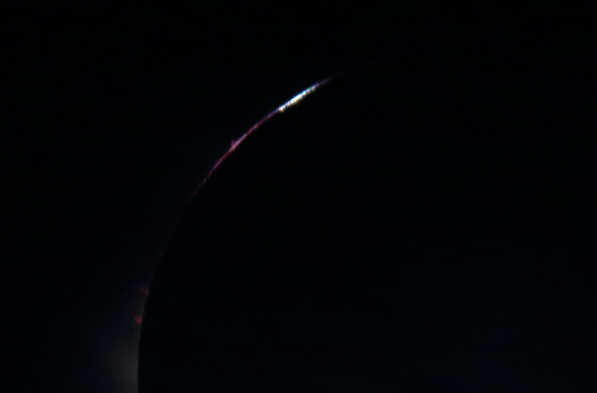Ξεκινήσαμε γύρω στις 12:30πμ, ο δρόμος ήταν άδειος και όσο πλησιάζαμε στο σημείο παρατήρησης όλο και βλέπαμε ανοιχτά τμήματα ουρανού στα ανατολικά. Οι ελπίδες μας αναπτερώθηκαν. Όταν φτάσαμε στην παραλία ήταν ήδη γεμάτη από εκλειπτικούς φίλους από όλο τον κόσμο. Αφού κάναμε μια αναγνωριστική βόλτα στήσαμε και εμείς τα τρίποδα και τις φωτογραφικές μας. Μέσα σε όλα δεν έχασα την ευκαιρία να αποθανατίσω μέσα από τα περιφερόμενα σύννεφα μερικούς νότιους αστερισμούς. Ουσιαστικά ήταν μόλις η 2η και τελευταία μας επαφή με τον Νότιο Ουρανό μιας και δεν μας έκανε καμιά καλή βραδιά σε όλη την διάρκεια του ταξιδιού. Καθώς ξημέρωνε τα σύννεφα αντί να αραιώνουν πύκνωναν. Την ώρα που ανέτειλε ο Ήλιος υπήρχε ένα άνοιγμα χαμηλά και τον είδαμε να ανεβαίνει ώσπου κρύφτηκε μέσα στα πυκνά νέφη, χάνοντας την 1η επαφή. Για λίγες στιγμές είδαμε την μερική φάση και όλοι παρακαλάγαμε για μια τρύπα την ώρα της ολικότητας. Η ώρα πέρασε χωρίς να το καταλάβουμε και λίγα δεύτερα πριν την 2η επαφή ο Ήλιος ξεπρόβαλε σε μια στενή ανέφελη λωρίδα. Θα την δούμε συλλογίστηκα και αμέσως μετά ένα λαμπερό διαμαντένιο δακτυλίδι εμφανίστηκε. Ζητωκραυγές ακούστηκαν μόλις έκανε την εμφάνιση του το μεγαλοπρεπές στέμμα. Το θέαμα ήταν απόκοσμο και δεν περιγράφεται με λέξεις. Η χαμηλή θέση του Ήλιου στις 15 μοίρες, ο ωκεανός η παραλία και ο κόσμος που είχε μαζευτεί για την παρατήρηση του φαινομένου έκαναν το θέαμα μοναδικό. Ευτυχώς ο Γιάννης και ο Δημήτρης αποθανάτισαν το τοπίο με τις εξαιρετικές τους λήψεις και ο Νίκος το κατέγραψε με βίντεο. Μετά από την τρίτη επιτυχή παρακολούθηση ολικής έκλειψης αυτό που έχω να πω σε αυτούς που με ρωτάνε, μα καλά αφού έχεις ήδη δύο τι διαφορετικό θα δεις πάλι, ένα έχω να πω. Κάθε έκλειψη ήταν μοναδική και εντελώς διαφορετική. Μια ολική έκλειψη Ηλίου δεν την βλέπεις απλώς, αλλά την ζεις την βιώνεις!