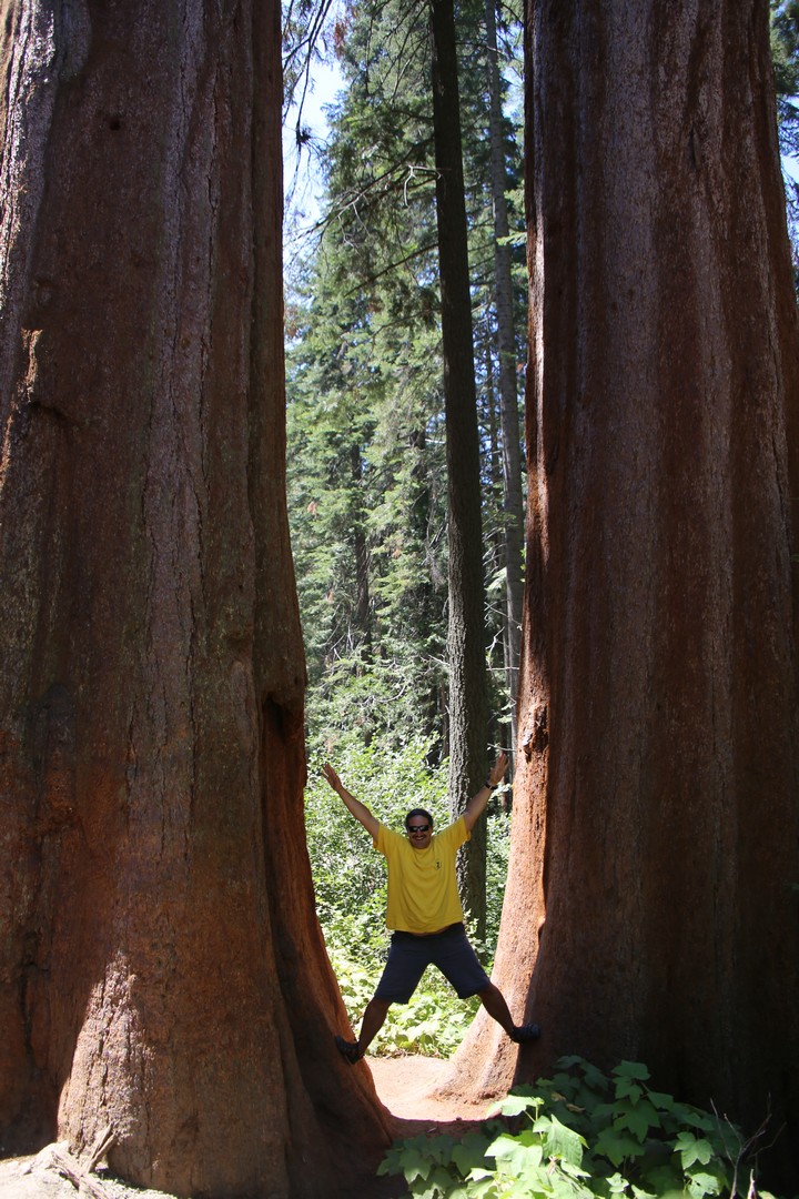 Η σεκόγια είναι ο ογκωδέστερος ζων οργανισμός στον πλανήτη αυτή τη στιγμή. 85 μέτρα ύψος, 8 μέτρα διάμετρος, 25 μέτρα περίμετρος, 3.500 χρόνια ηλικία (το ψηλότερο δένδρο είναι το παράκτιο κόκκινο πεύκο 115 μέτρα.) Καλά! Αν δεν ξαπλώσεις χάμω ανάμεσα στις σεκόγιες, να σου κρύψουν τον ουρανό, πού να καταλάβεις πόσο γιγάντια δένδρα είναι. Δοκιμάσαμε να τα κάνουμε αγκαλίτσα, αλλά μας έλλειπαν 10 άτομα. Επισκεφθήκαμε το μουσείο και περπατήσαμε σε μια χάραξη στο έδαφος 85 μέτρων που αναπαριστούσε μια εικονική ανάβαση στη σεκόγια μπροστά στο μουσείο. Εκστασιασμένοι και από αυτές τις εμπειρίες μας γυρνάμε στο Λος Άντζελες. Βέβαια αν κάποιος διαθέτει περισσότερες από μια μέρες σε αυτό το δάσος, αξίζει να επισκεφθεί με guided tour το σπήλαιο Crystal Cave (κάντε κράτηση μήνες πριν!) τους δυο καταρράκτες και τη λίμνη.