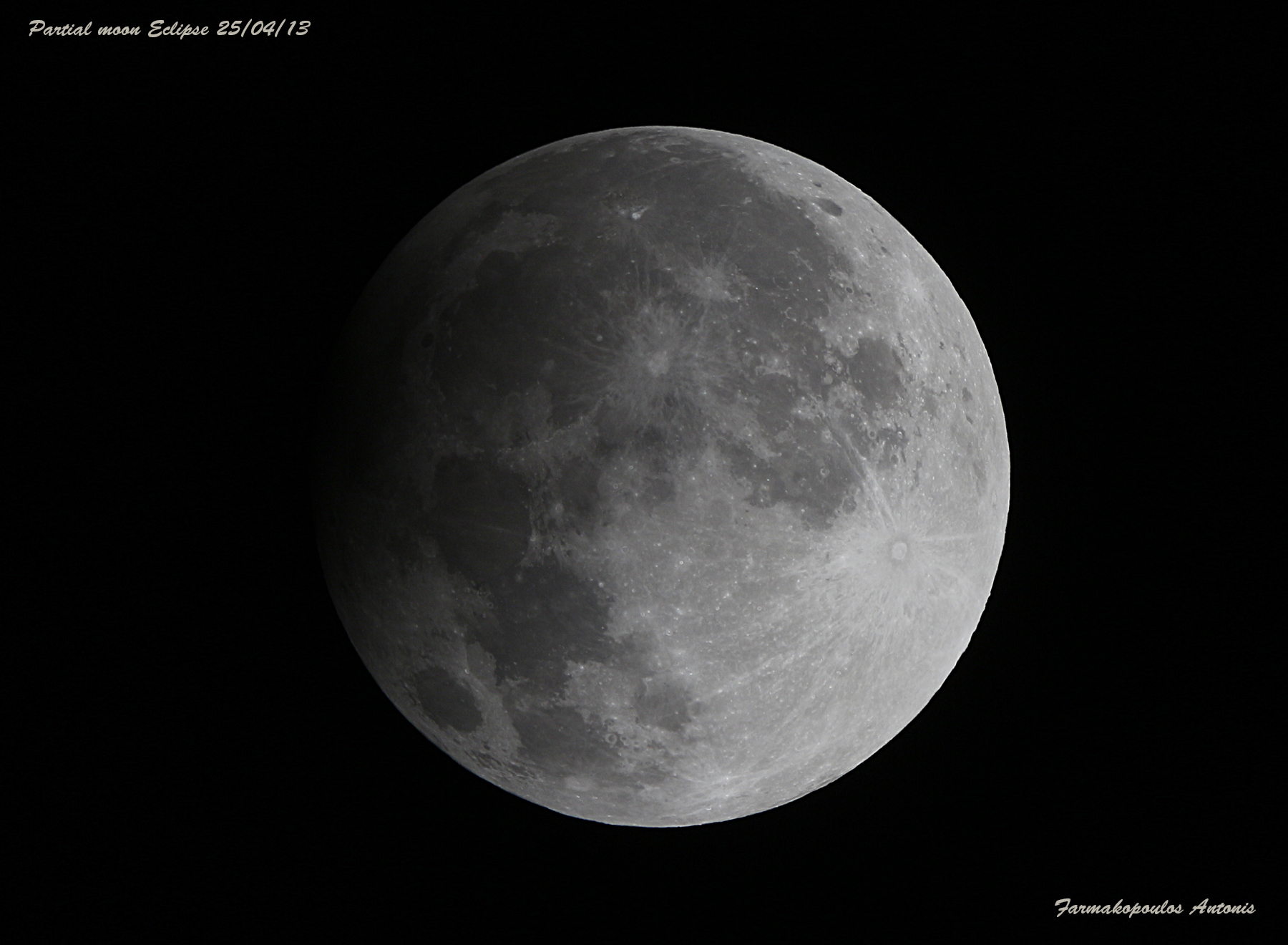 The moon eclipses are happening when the moon is at the shadow of Earth, at the same or almost the same straight line. A moon eclipse can only happened during a full moon. When the moon is totality in the shadow of Earth then we have full eclipse and Partial when only a part of the moon rests in Earth. Moon eclipses are happens every year but they are not visual from all the places. The next images are from total and partial eclipses of the years 2008 & 2009. The next visible total eclipse from Greece will be at 15th of june of 2011.