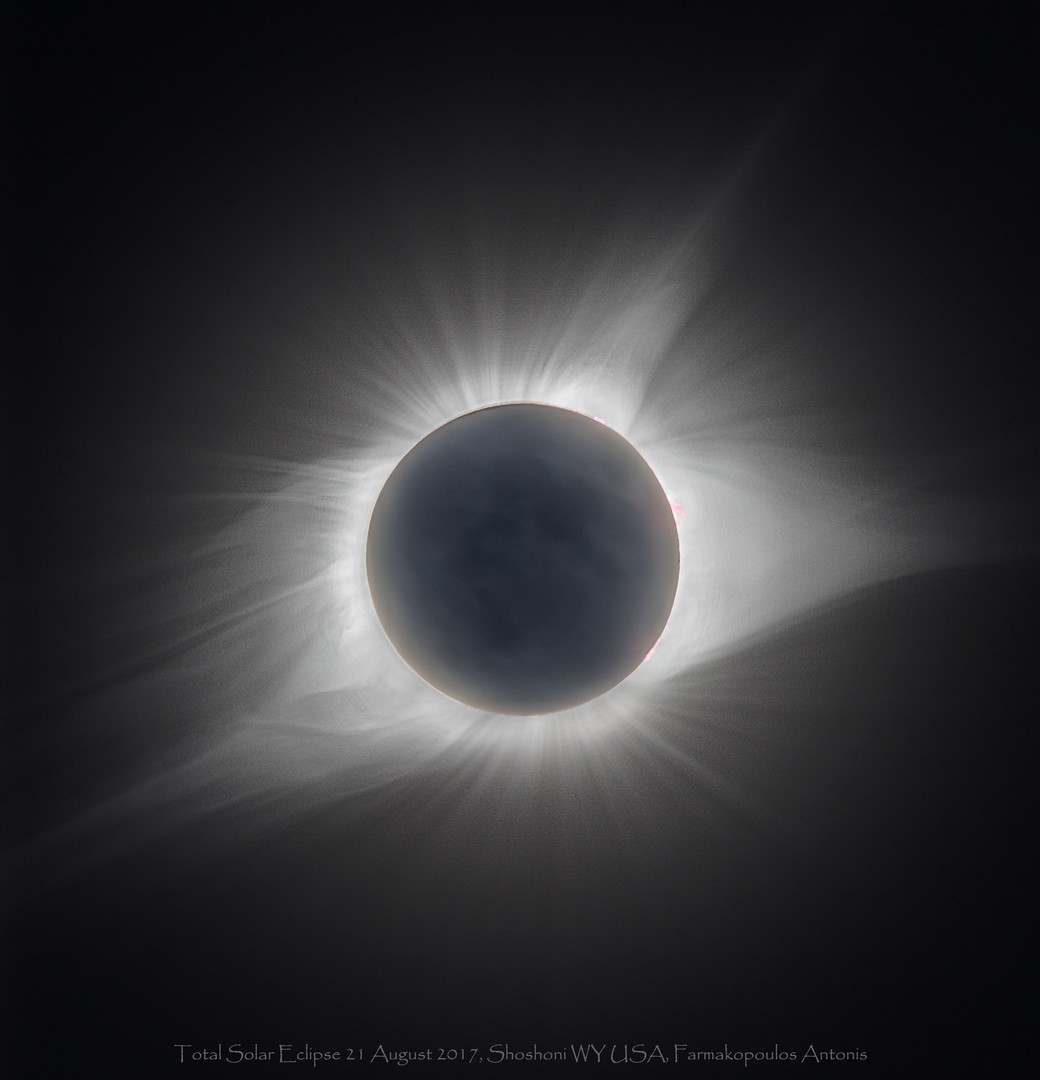A total solar eclipse occurs when the disk of the moon obscures the bright sun, allowing the solar corona to be visible. This is happening because the sun’s distance from Earth is 400 times the Moon’s and its diameter is 400 times Moon’s diameter, so the two objects in the sky appear to have the same size.