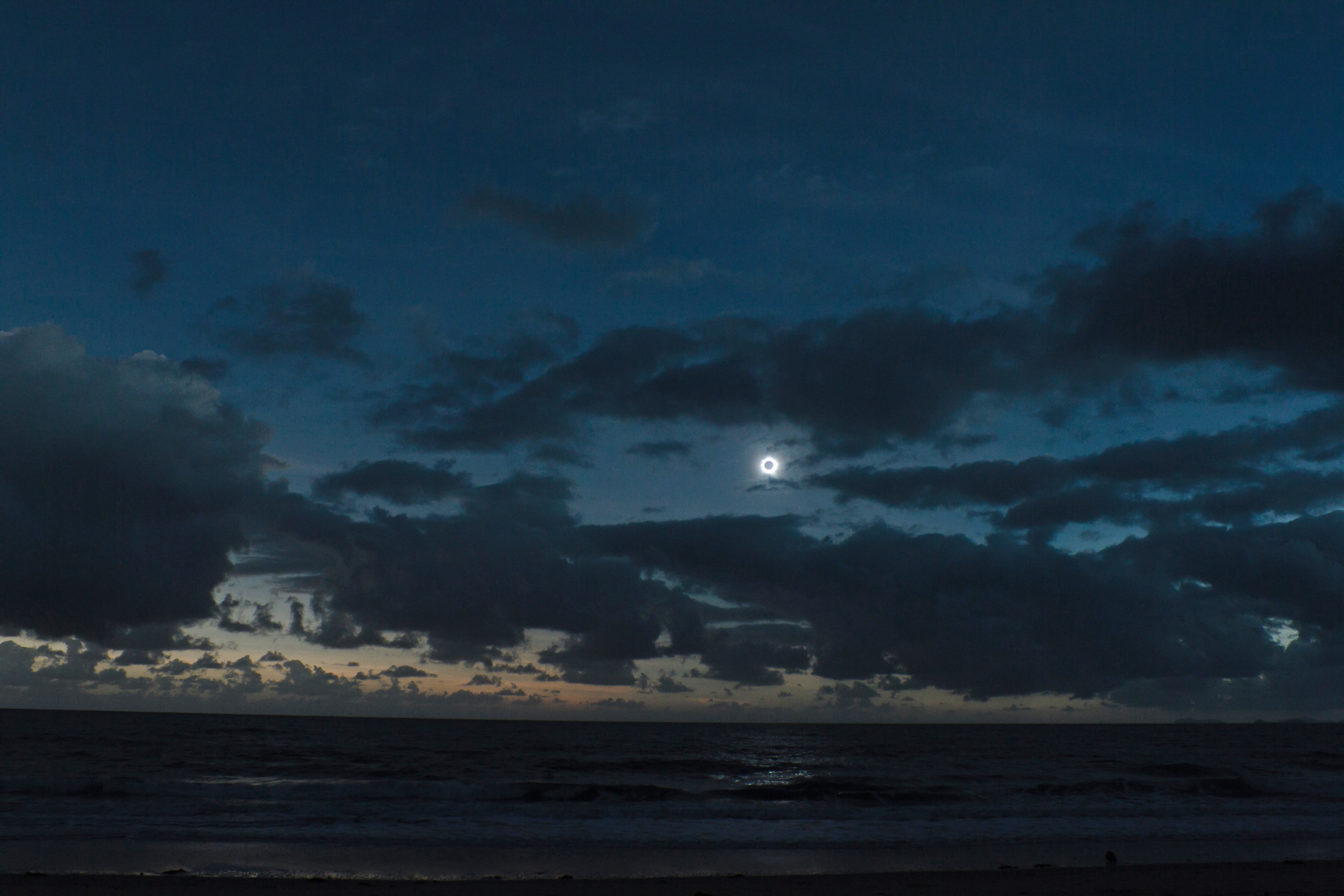 Ξεκινήσαμε γύρω στις 12:30πμ, ο δρόμος ήταν άδειος και όσο πλησιάζαμε στο σημείο παρατήρησης όλο και βλέπαμε ανοιχτά τμήματα ουρανού στα ανατολικά. Οι ελπίδες μας αναπτερώθηκαν. Όταν φτάσαμε στην παραλία ήταν ήδη γεμάτη από εκλειπτικούς φίλους από όλο τον κόσμο. Αφού κάναμε μια αναγνωριστική βόλτα στήσαμε και εμείς τα τρίποδα και τις φωτογραφικές μας. Μέσα σε όλα δεν έχασα την ευκαιρία να αποθανατίσω μέσα από τα περιφερόμενα σύννεφα μερικούς νότιους αστερισμούς. Ουσιαστικά ήταν μόλις η 2η και τελευταία μας επαφή με τον Νότιο Ουρανό μιας και δεν μας έκανε καμιά καλή βραδιά σε όλη την διάρκεια του ταξιδιού. Καθώς ξημέρωνε τα σύννεφα αντί να αραιώνουν πύκνωναν. Την ώρα που ανέτειλε ο Ήλιος υπήρχε ένα άνοιγμα χαμηλά και τον είδαμε να ανεβαίνει ώσπου κρύφτηκε μέσα στα πυκνά νέφη, χάνοντας την 1η επαφή. Για λίγες στιγμές είδαμε την μερική φάση και όλοι παρακαλάγαμε για μια τρύπα την ώρα της ολικότητας. Η ώρα πέρασε χωρίς να το καταλάβουμε και λίγα δεύτερα πριν την 2η επαφή ο Ήλιος ξεπρόβαλε σε μια στενή ανέφελη λωρίδα. Θα την δούμε συλλογίστηκα και αμέσως μετά ένα λαμπερό διαμαντένιο δακτυλίδι εμφανίστηκε. Ζητωκραυγές ακούστηκαν μόλις έκανε την εμφάνιση του το μεγαλοπρεπές στέμμα. Το θέαμα ήταν απόκοσμο και δεν περιγράφεται με λέξεις. Η χαμηλή θέση του Ήλιου στις 15 μοίρες, ο ωκεανός η παραλία και ο κόσμος που είχε μαζευτεί για την παρατήρηση του φαινομένου έκαναν το θέαμα μοναδικό. Ευτυχώς ο Γιάννης και ο Δημήτρης αποθανάτισαν το τοπίο με τις εξαιρετικές τους λήψεις και ο Νίκος το κατέγραψε με βίντεο. Μετά από την τρίτη επιτυχή παρακολούθηση ολικής έκλειψης αυτό που έχω να πω σε αυτούς που με ρωτάνε, μα καλά αφού έχεις ήδη δύο τι διαφορετικό θα δεις πάλι, ένα έχω να πω. Κάθε έκλειψη ήταν μοναδική και εντελώς διαφορετική. Μια ολική έκλειψη Ηλίου δεν την βλέπεις απλώς, αλλά την ζεις την βιώνεις!