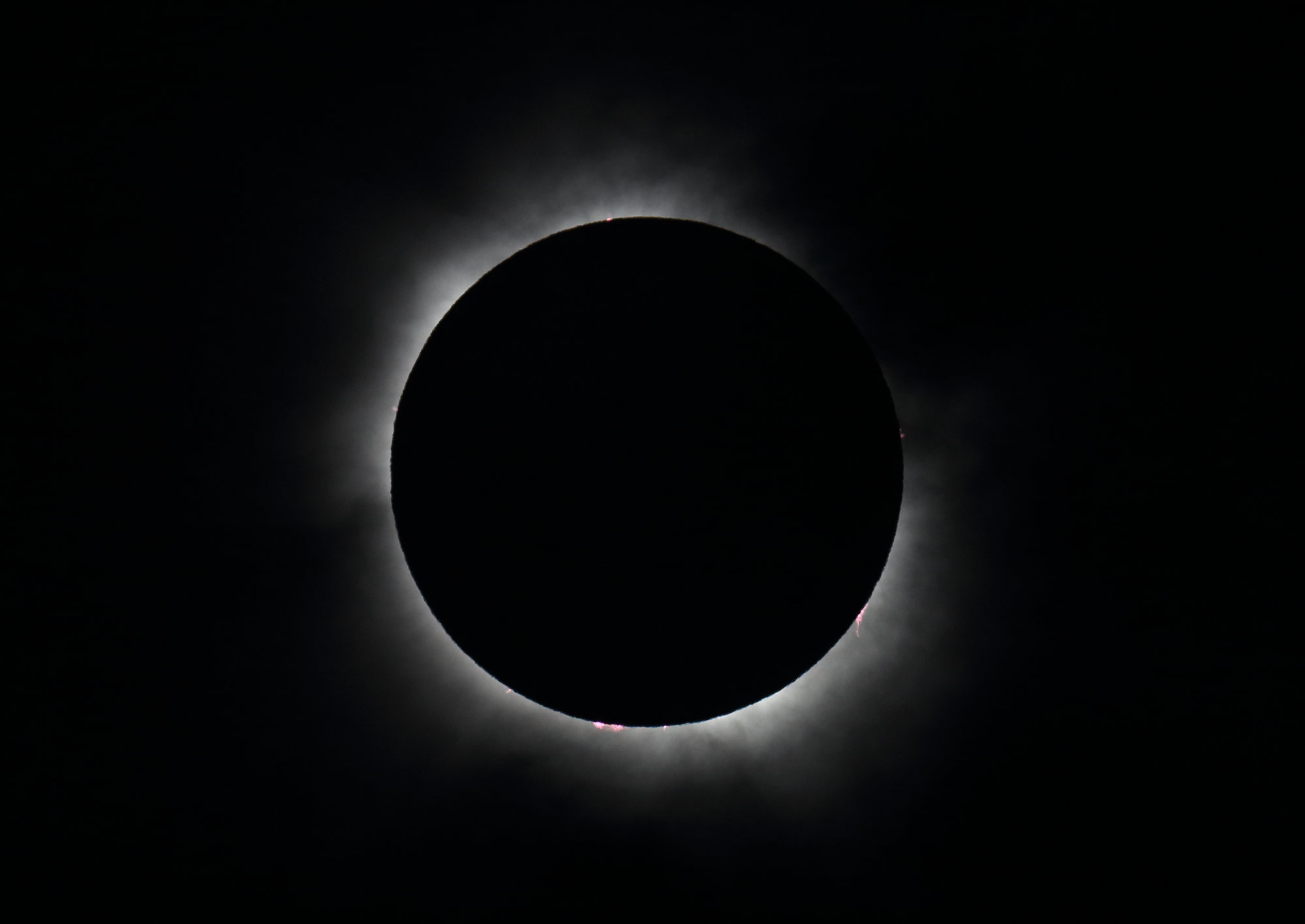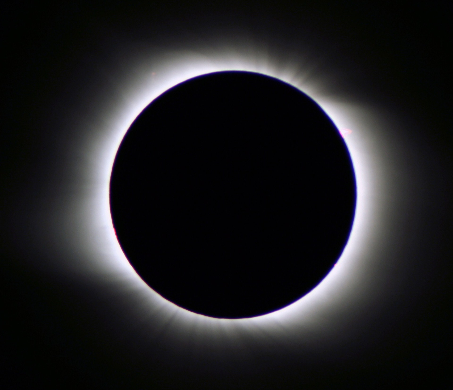 A total solar eclipse occurs when the disk of the moon obscures the bright sun, allowing the solar corona to be visible. This is happening because the sun’s distance from Earth is 400 times the Moon’s and its diameter is 400 times Moon’s diameter, so the two objects in the sky appear to have the same size.