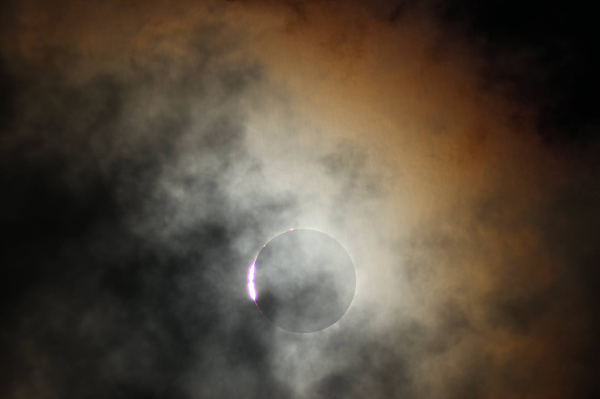 Ένα μικρό συννεφάκι έμελλε να περνάει την ώρα που το 1ο Diamond Ring έκανε την εμφάνιση του κάνοντας το θέαμα απόκοσμο. Μερικά δευτερόλεπτα μετά, ένα πανέμορφο λαμπερό στέμμα εμφανίστηκε. Η Αφροδίτη φάνηκε στα ανατολικά και ο Ερμής δυτικά. Δεν το πιστεύαμε αυτό που βλέπαμε, ομολογουμένως το πιο όμορφο έως τώρα ηλιακό στέμμα που είχαμε παρατηρήσει. Οι μαγνητικές γραμμές και οι προεξοχές ορατές με γυμνό μάτι. Ένα μικρό συννεφάκι κάλυψε μερικώς το ηλιακό στέμμα λίγο πριν την τέταρτη επαφή, αλλά ο ήλιος εμφανίστηκε πάλι ένα δευτερόλεπτο πριν το 2ο Diamond Ring. Λίγα λεπτά μετά τα σύννεφα επανήλθαν και η βροχή ξανάρχισε, αλλά τώρα δεν μας ένοιαζε καθόλου... Απ' ότι πληροφορηθήκαμε η περιοχή που επιλέξαμε για την παρατήρηση της έκλειψης, εμείς και άλλα 150 - 200 άτομα από τους 10.000 επισκέπτες, ήταν η μοναδική από την οποία παρατηρήθηκε η ολικότητα χωρίς σύννεφα.