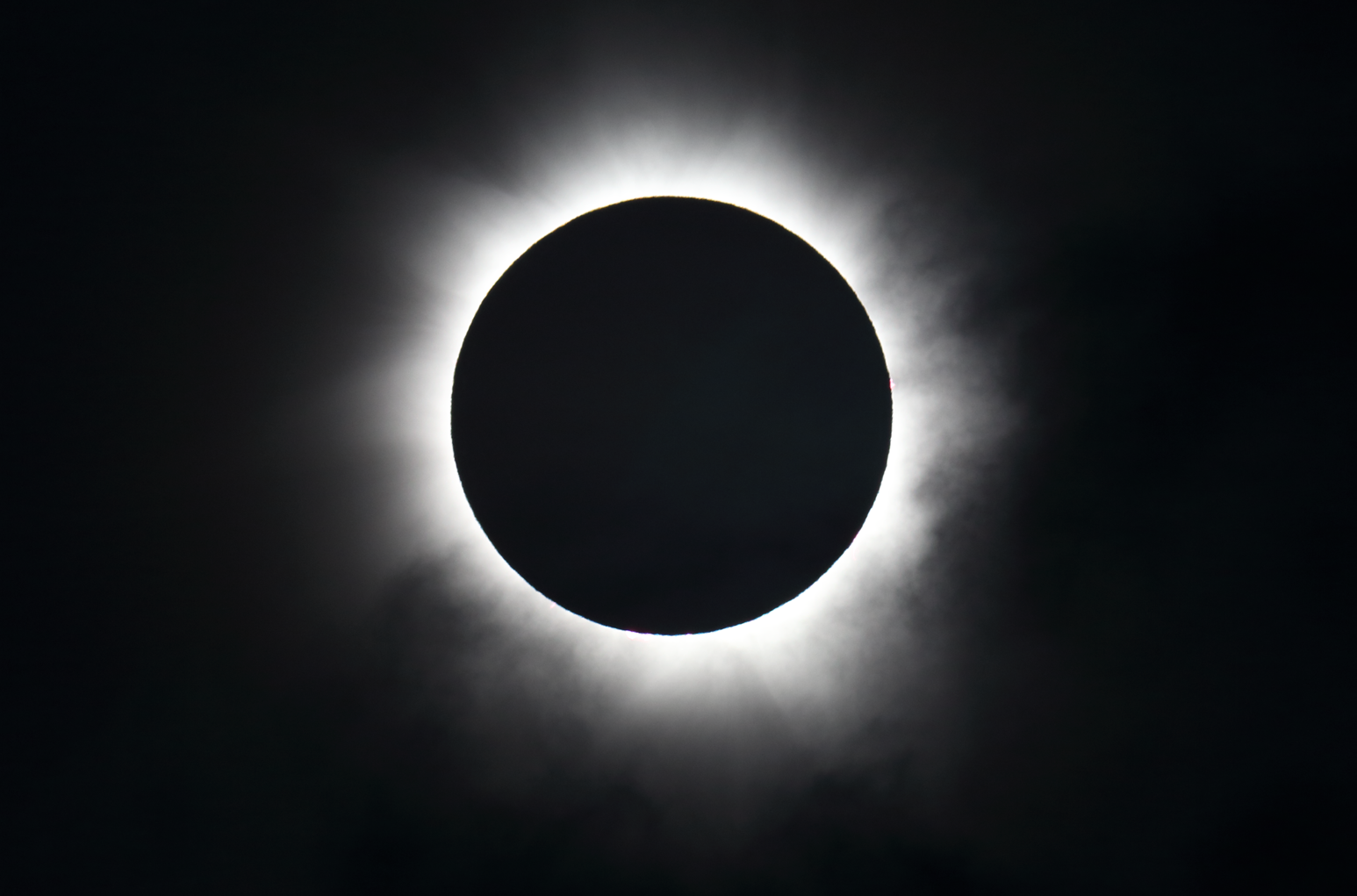 A total solar eclipse occurs when the disk of the moon obscures the bright sun, allowing the solar corona to be visible. This is happening because the sun’s distance from Earth is 400 times the Moon’s and its diameter is 400 times Moon’s diameter, so the two objects in the sky appear to have the same size.